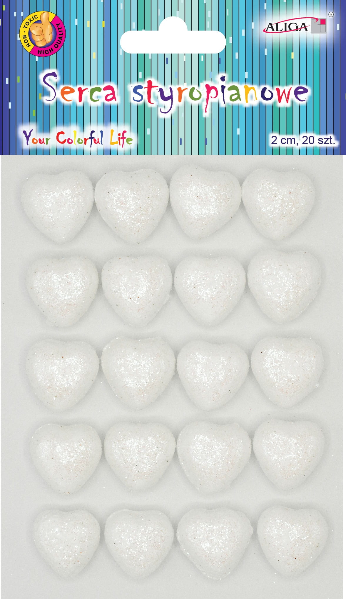 Serca styropianowe brokatowe perłowe 2cm