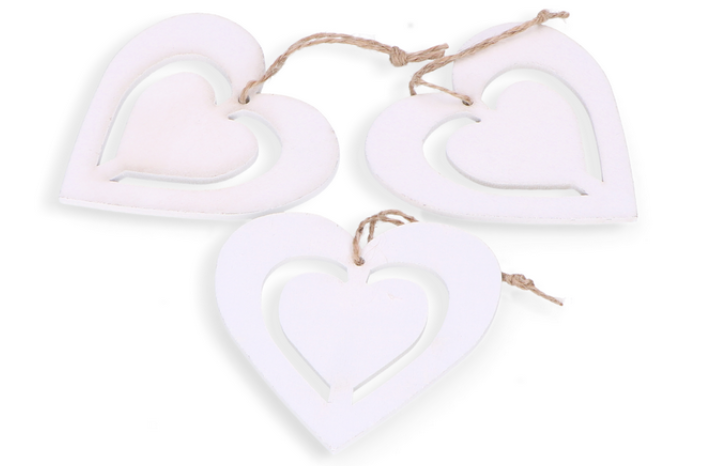 Serca zawieszki białe drewniane 3szt.