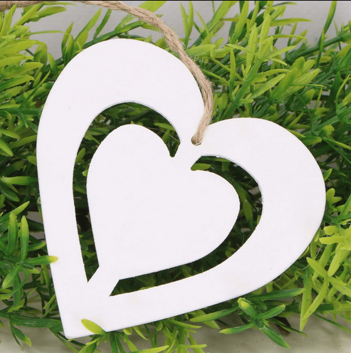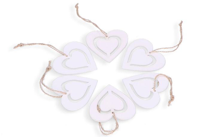 Serca zawieszki białe drewniane 6szt.