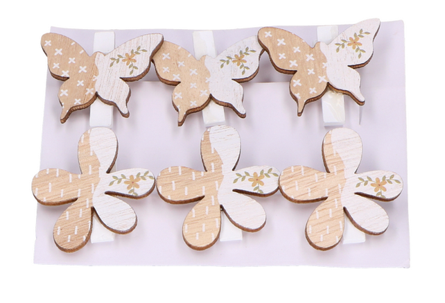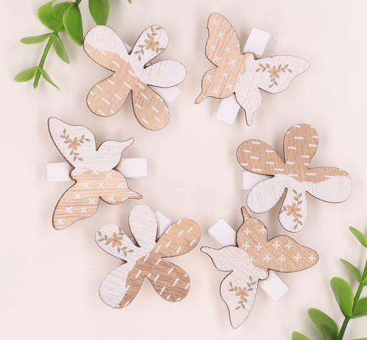 Spinacze kwiatki motylki naturalne 6szt