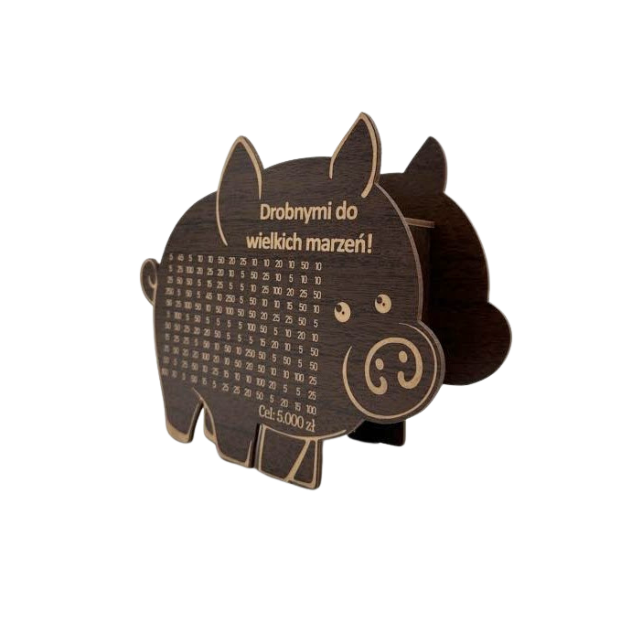 Świnka Skarbonka DROBNYMI DO WIELKICH MARZEŃ kolor WENGE