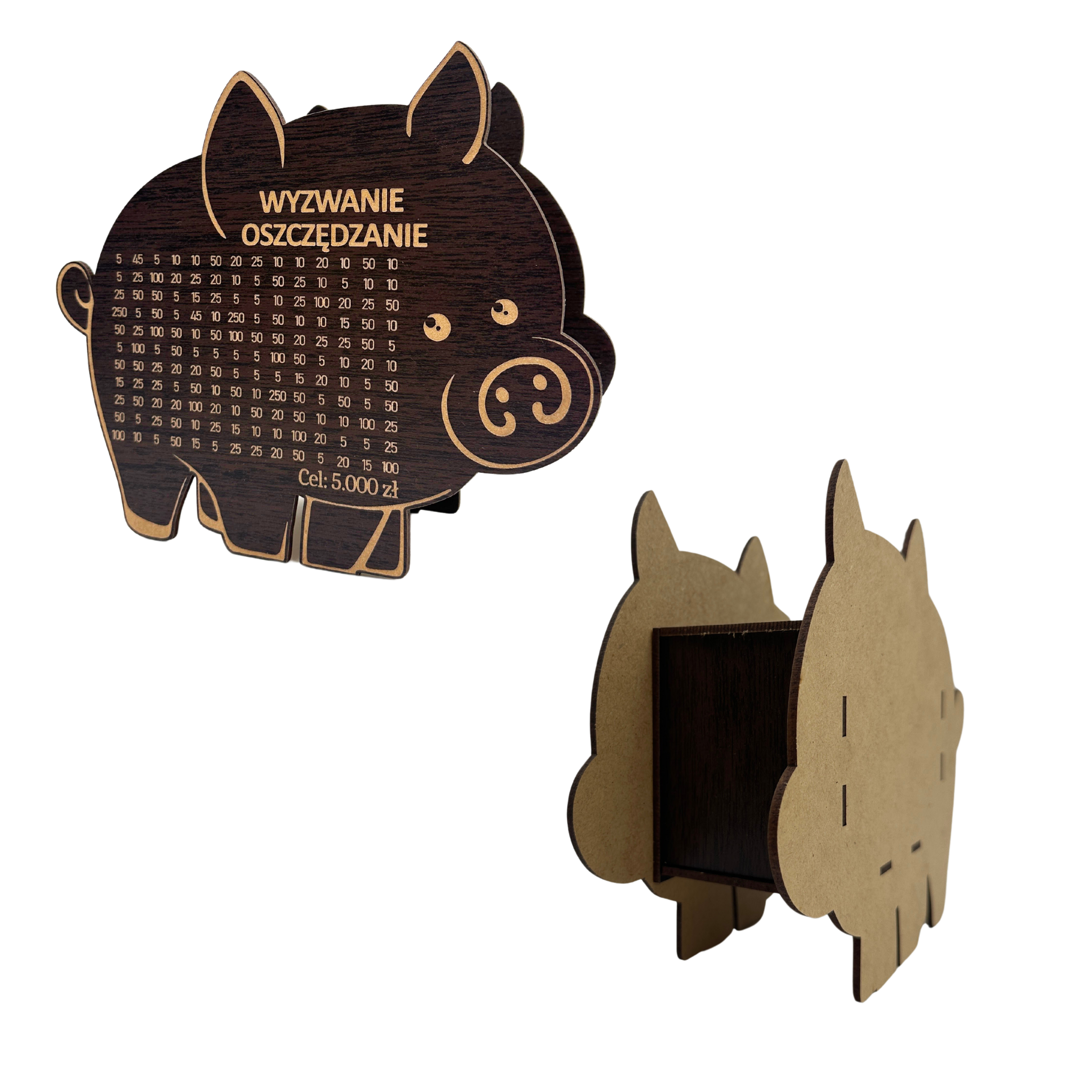Świnka Skarbonka WYZWANIE OSZCZĘDZANIE kolor WENGE