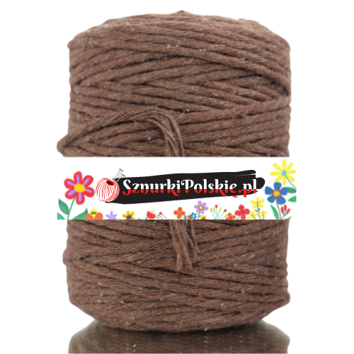 Sznurek bawełniany skręcany BRĄZOWY 20m 3mm