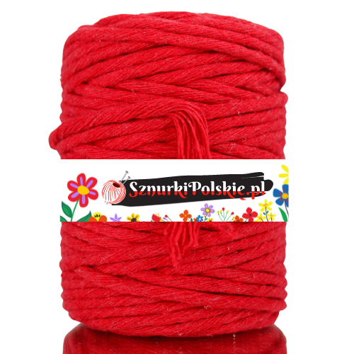 Sznurek bawełniany skręcany CZERWONY 10m 5mm
