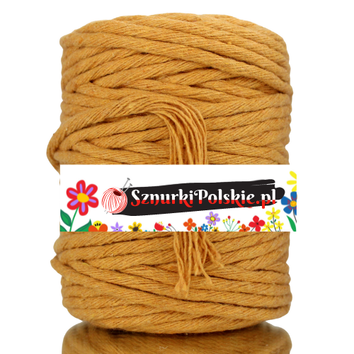 Sznurek bawełniany skręcany MUSZTARDOWY 10m 5mm