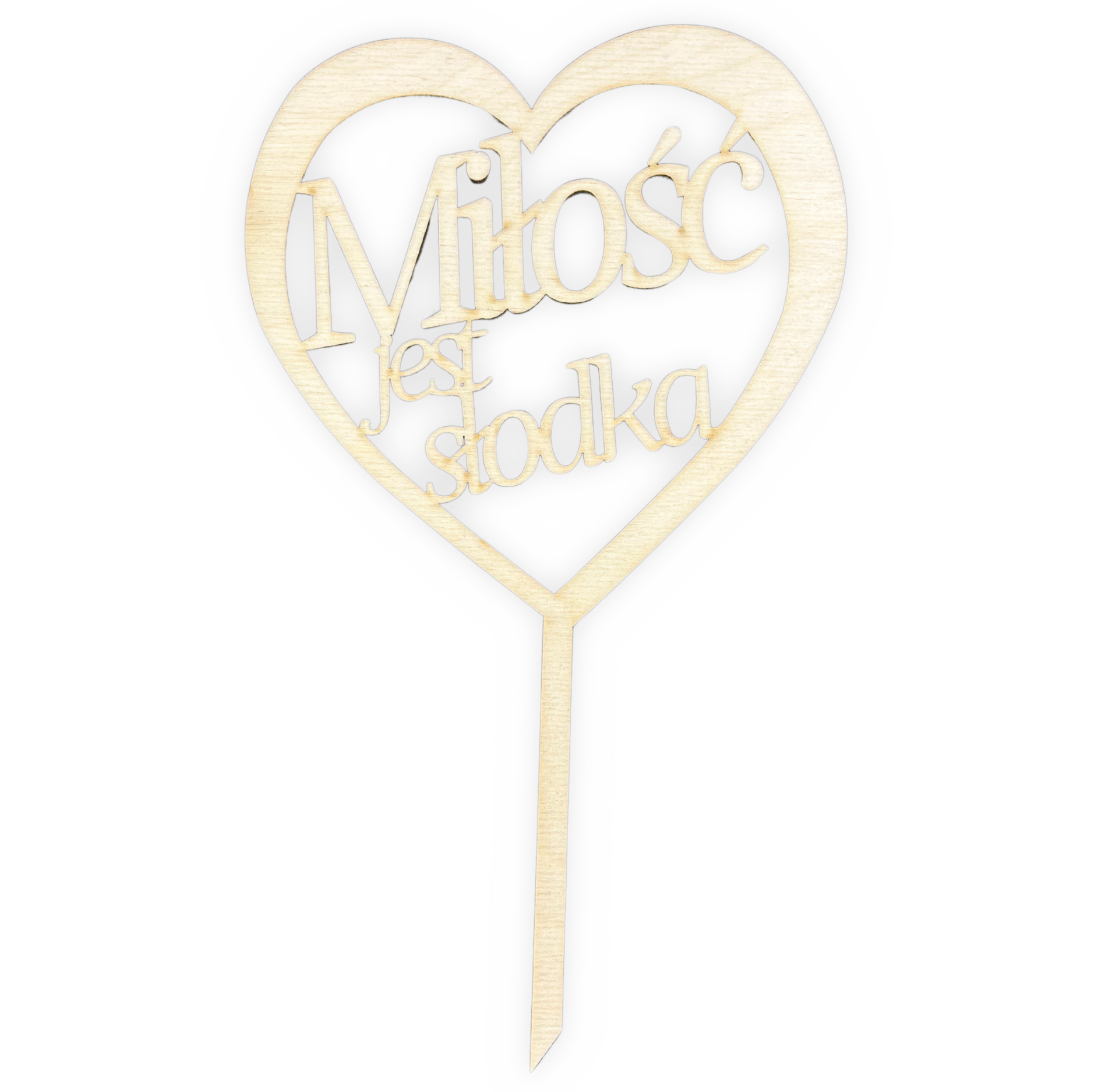 Topper drewniany serce Miłość jest słodka na tort weselny pik na piku dekor