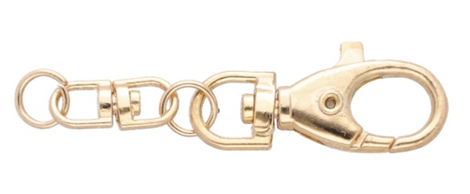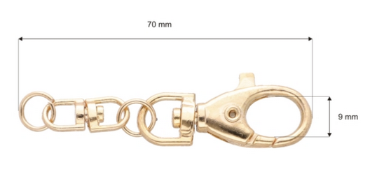 Metalowa zawieszka do breloka z karabińczykiem w kolorze złota umożliwia przymocowanie dekoracyjnych przywieszek przy torebkach, plecakach lub przy smyczach reklamowych. Ich klasyczny wygląd sprawdzi się zarówno przy bogato zdobionych charmsach i kolorowych, futrzanych pomponach, jak i subtelnych brelokach ze skaju.