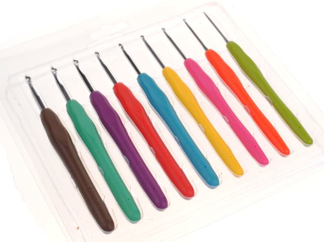 Zestaw szydełek aluminiowych z gumową rączką 9szt