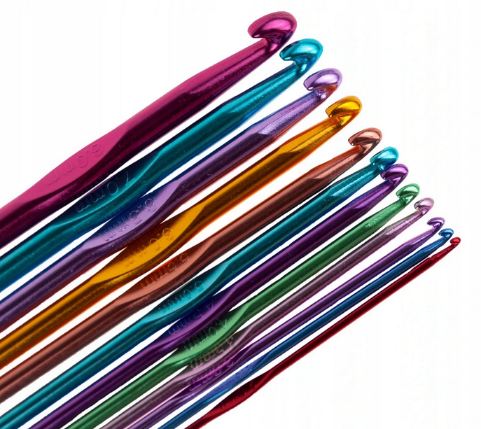 Doskonały zestaw do szydełkowania – 12 sztuk kolorowych szydełek w rozmiarach: